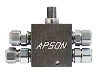 The APSON Overpressure Valve OPV-2000 is a mechanically adjustable, compact overpressure valve for aggressive liquid non-granular media, e.g. lacquers, solvents, caustic solutions, a.o. It is particularly suitable for the application in automatic painting systems for preventing loss of production times due to bursting of medium hoses subjected to pressure.